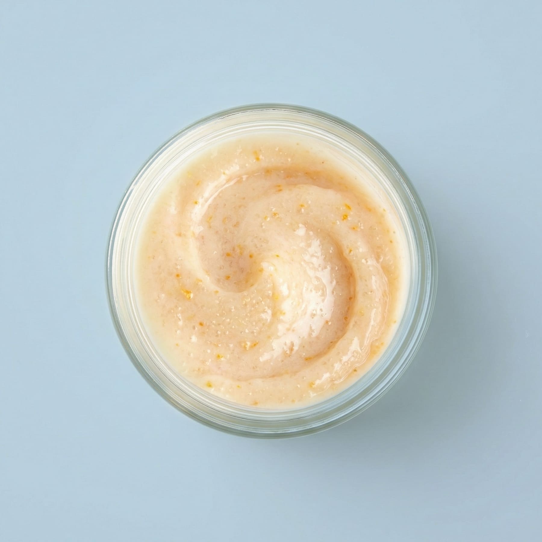 Sucrose, Cocos Nucifera Oil, Mangifera Indica Seed Butter, Cetyl Alcohol, Helianthus Annuus Seed Oil, Vitis Vinifera Seed Oil, Prunus Amygdalus Dulcis Oil, Limonene, Apricot kernel powder, Citrus Aurantium Dulcis Peel Oil, Caprylic/Capric Triglyceride, Butyrospermum Parkii Butter, Persea Gratissima Oil, Tocopheryl Acetate, Citrus aurantifolia Oil, Cinnamomum Zeylanicum Leaf Oil, Cinnamal, Pinene, Capsicum Frutescens Resin, Linalool, Eugenol, Citral, Beta‑Caryophyllene, Terpineol.