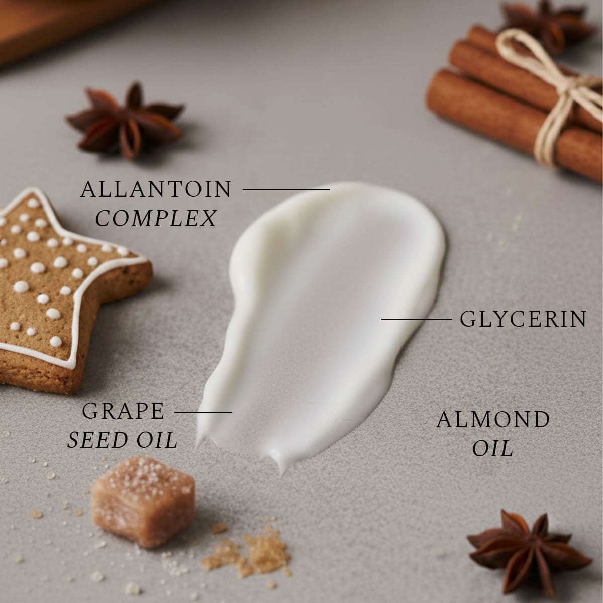 A cozy blend of baked sweetness, golden caramel, and subtle holiday spice that enhances every care ritual with gentle seasonal warmth.