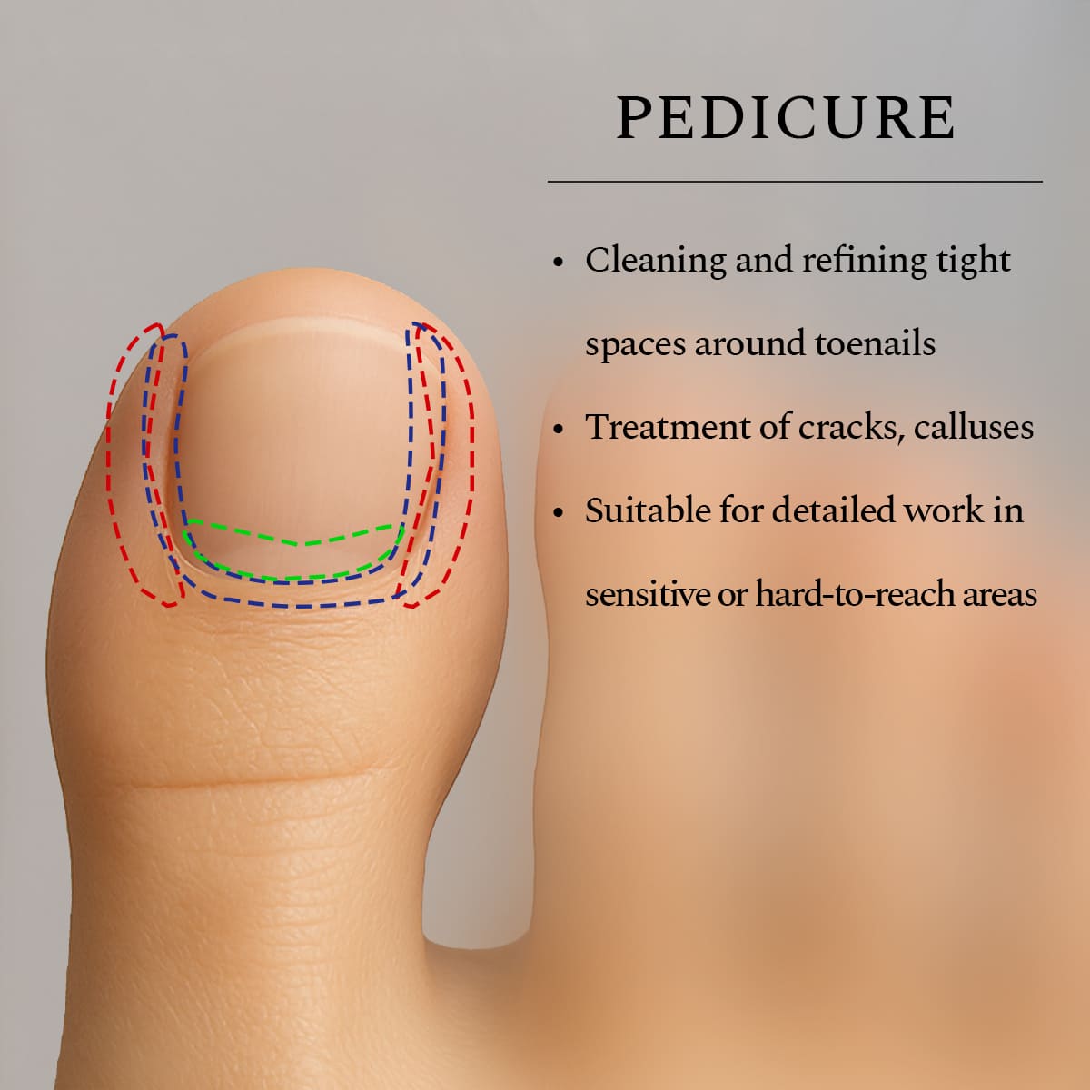 This fine-grit diamond drop bit is crafted for delicate, detailed work in the cuticle area and lateral nail folds. The 2.7 mm teardrop shape provides exceptional control, making it ideal for gentle exfoliation and finishing in tight or curved zones.