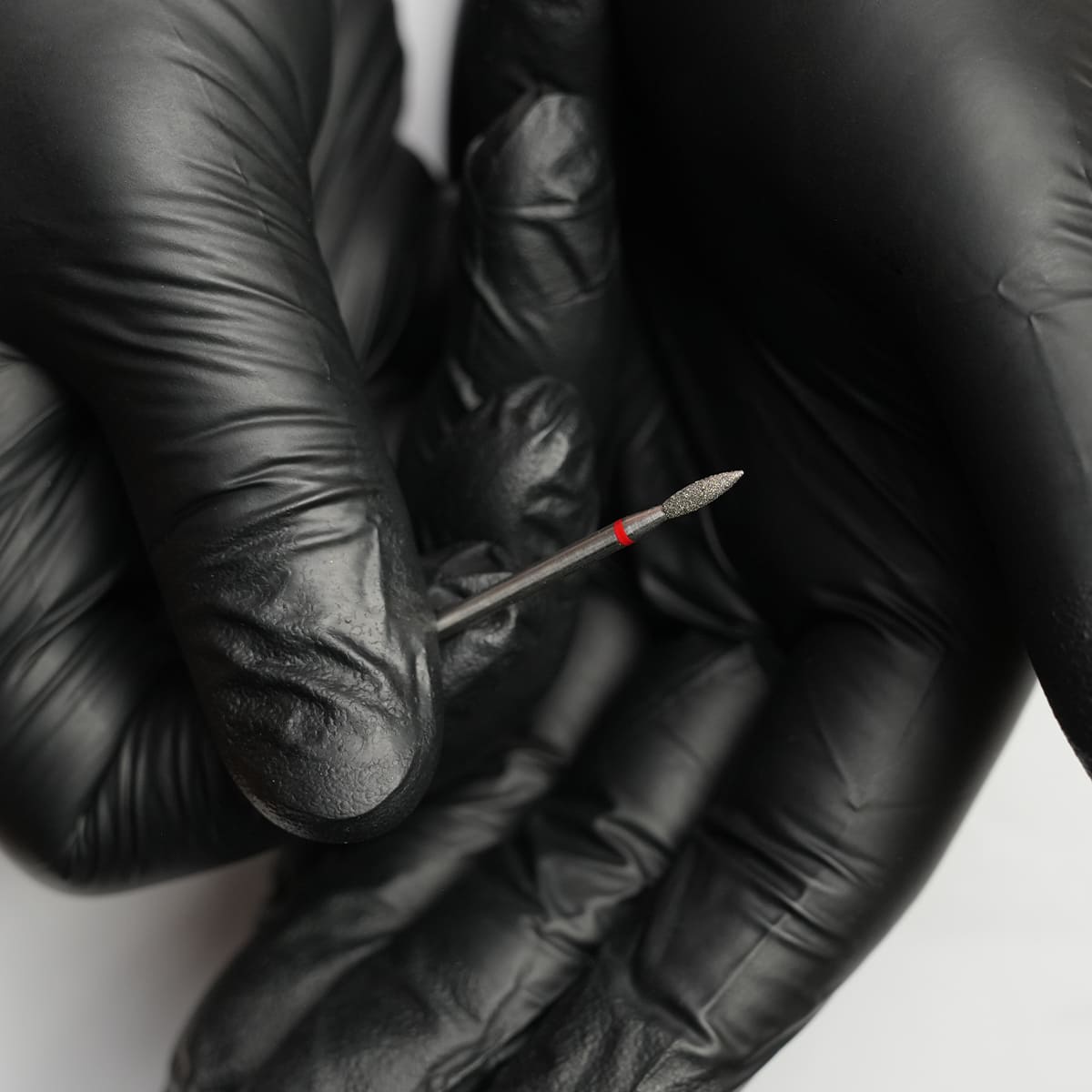 This fine-grit diamond flame bit with a 2.2 mm tip provides smooth, controlled precision for cuticle care and lateral fold refinement. Its slightly wider flame shape offers better coverage while maintaining accuracy in delicate and narrow zones.