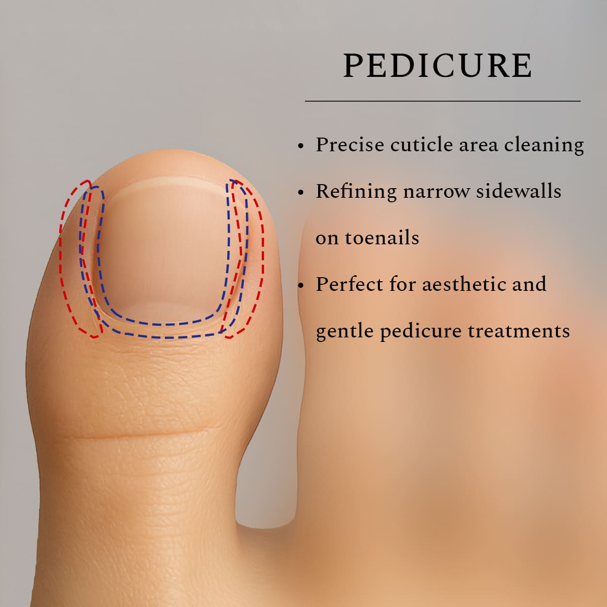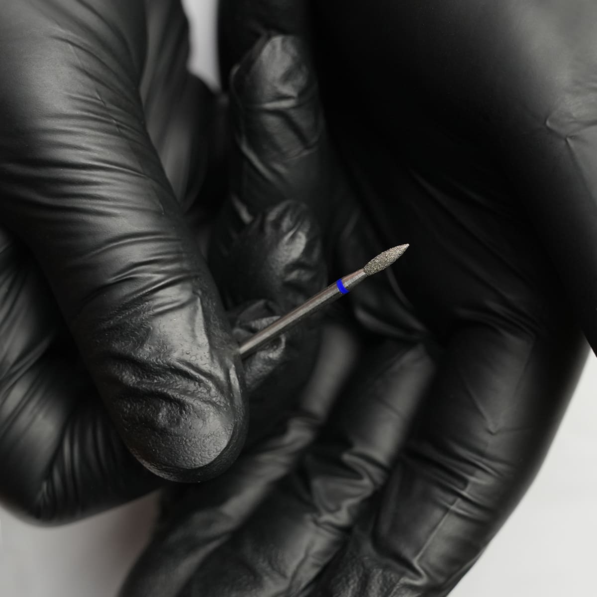 This medium-grit diamond flame bit is designed for lifting cuticles, cleaning side walls, and refining nail plate edges during manicure and pedicure. The 2.2 mm tapered flame shape provides precision with slightly more coverage than narrower bits, ensuring efficient and safe work in delicate areas.