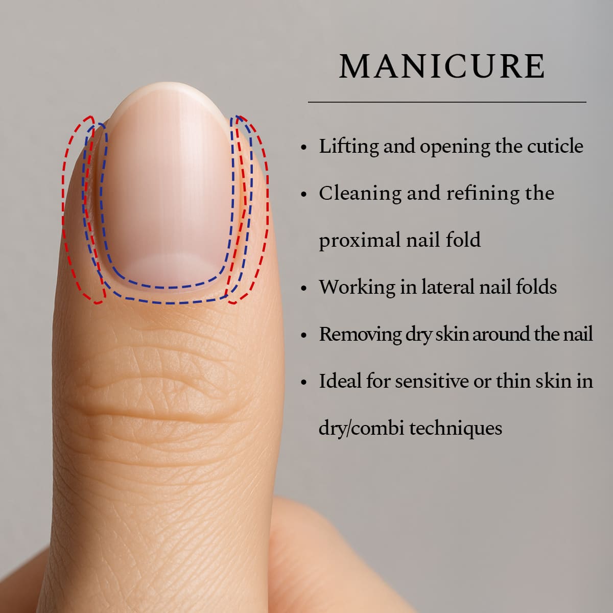 - Ideal for sensitive or thin skin in dry/combi techniques