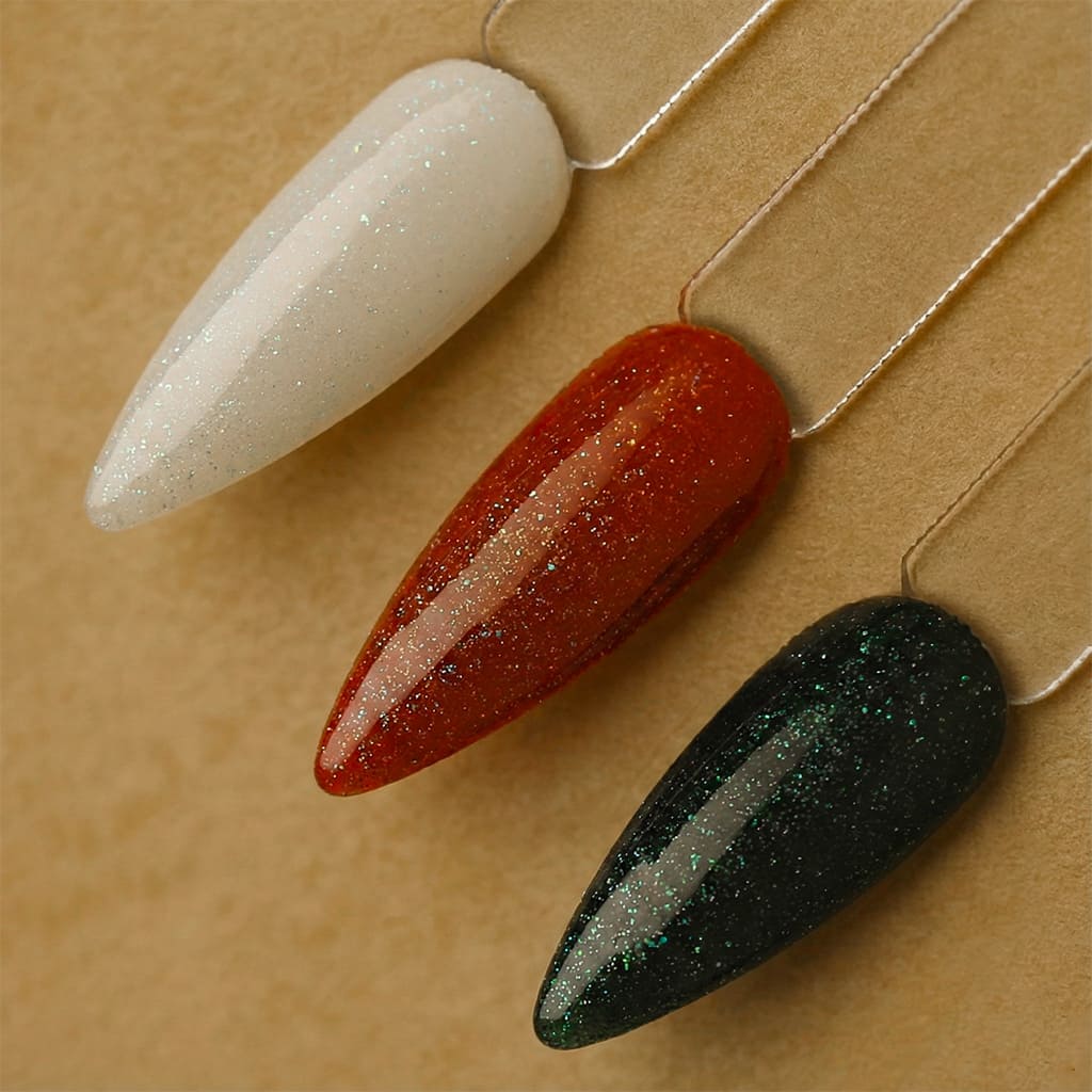 This professional no‑wipe top gel with ultra‑fine white, blue and green shimmer is designed to reveal light in motion. Delicate particles adapt to the base color and create a refined, multidimensional glow without overpowering the design.