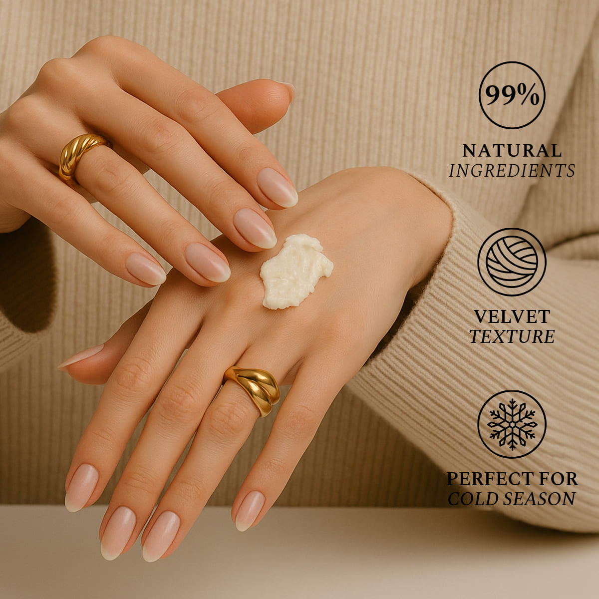 Его бархатистая текстура тает при контакте, восстанавливая мягкость, упругость и комфорт — тонкое сезонное наслаждение, идеально подходящее для завершения салонных процедур или для поднятия уровня ежедневных праздничных ритуалов.